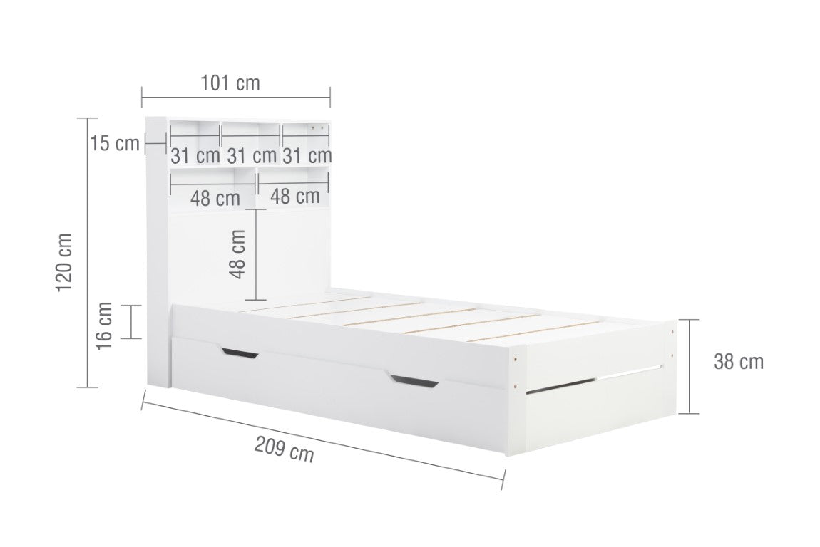 The Alfie storage bed is a versatile bed like no other. The Alfie comes with a headboard storage solution ideal for books, blankets and other trinkets.