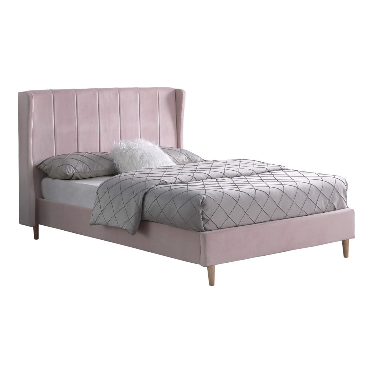 Amelia 5FT Bed - Pink Velvet Fabric