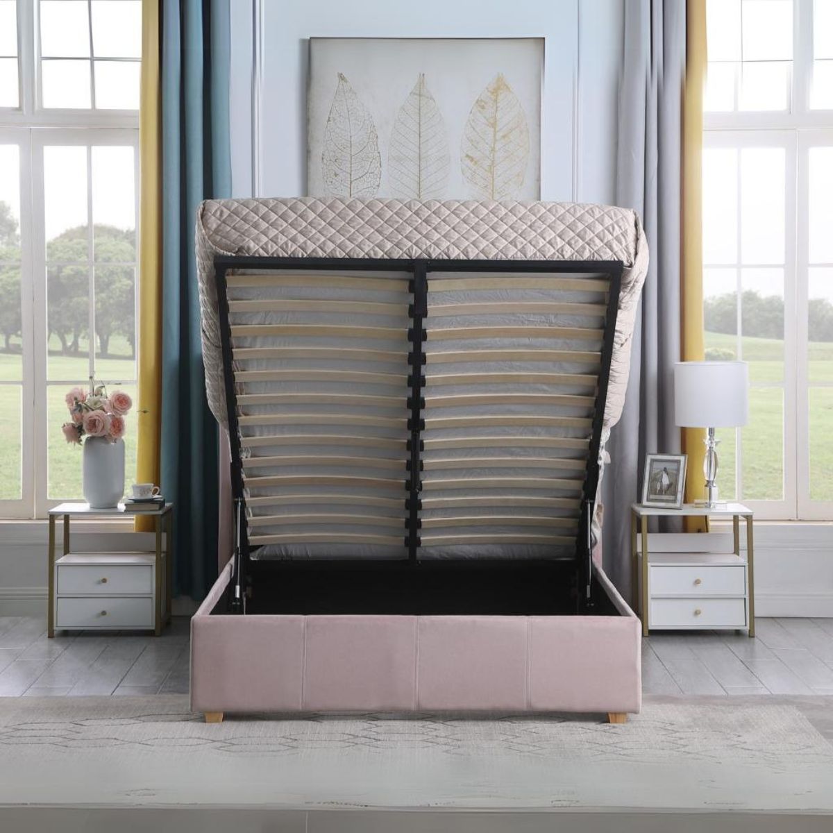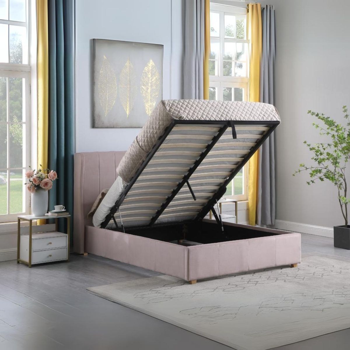 Amelia Plus 4FT6 Storage Bed - Pink Velvet Fabric