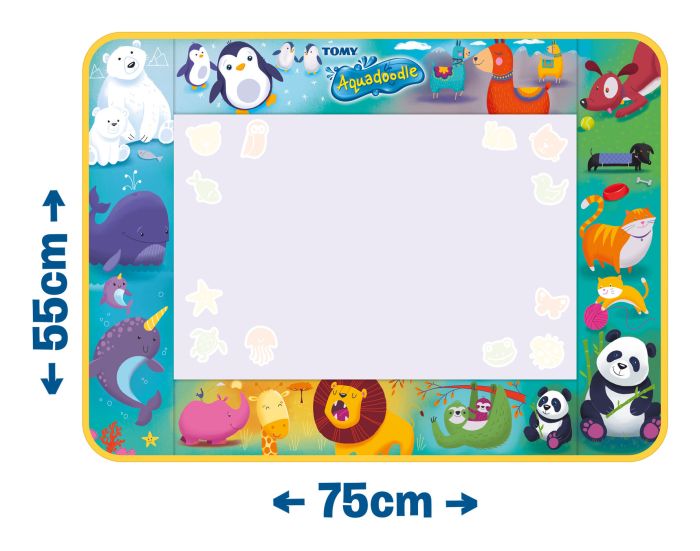 There’s no paper or crayons to go missing and no waste. The Aquadoodle mat is ideal for children as young as 18 months starting out with mark making by using their hands and feet. They will soon develop hand-eye coordination and fine motor skills as they begin to draw with the easy-grip Aquadoodle pen that sits comfortably in their hands. Made by TOMY from high quality materials, this original mat from Aquadoodle is made to last. 75 x 55 cm. Suitable for toddlers and children aged 18 months and over.