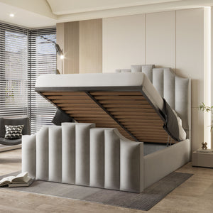 This gorgeous bedframe is available is 12 different colour variations and has ottoman storage for extra storage space.
