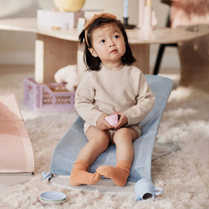 Our lightweight bouncers are easy to move around and take with you – they’re a cosy place for your baby to play close by you, while you have your hands free for a while. The natural rocking of a bouncer usually has a comforting effect on a very young baby. As your baby grows and learns how to control the rocking, the bouncer becomes even more fun, and also stimulates your baby’s balance and motor skills.