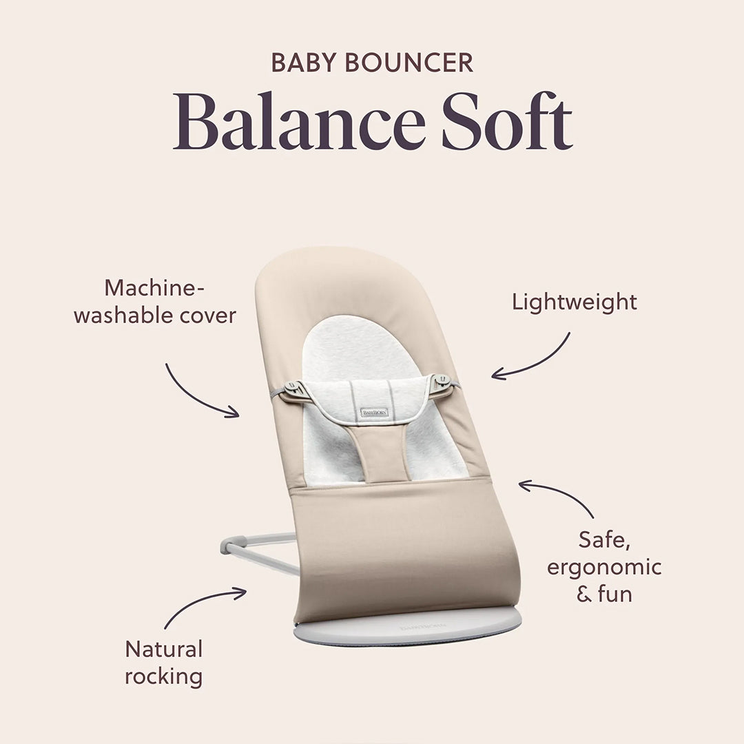 Bouncer Balance Soft is a lightweight and handy baby bouncer with natural rocking that makes life with young children easier and more enjoyable.