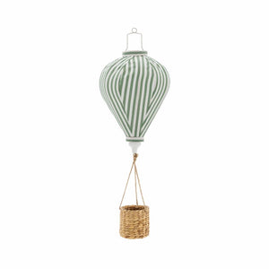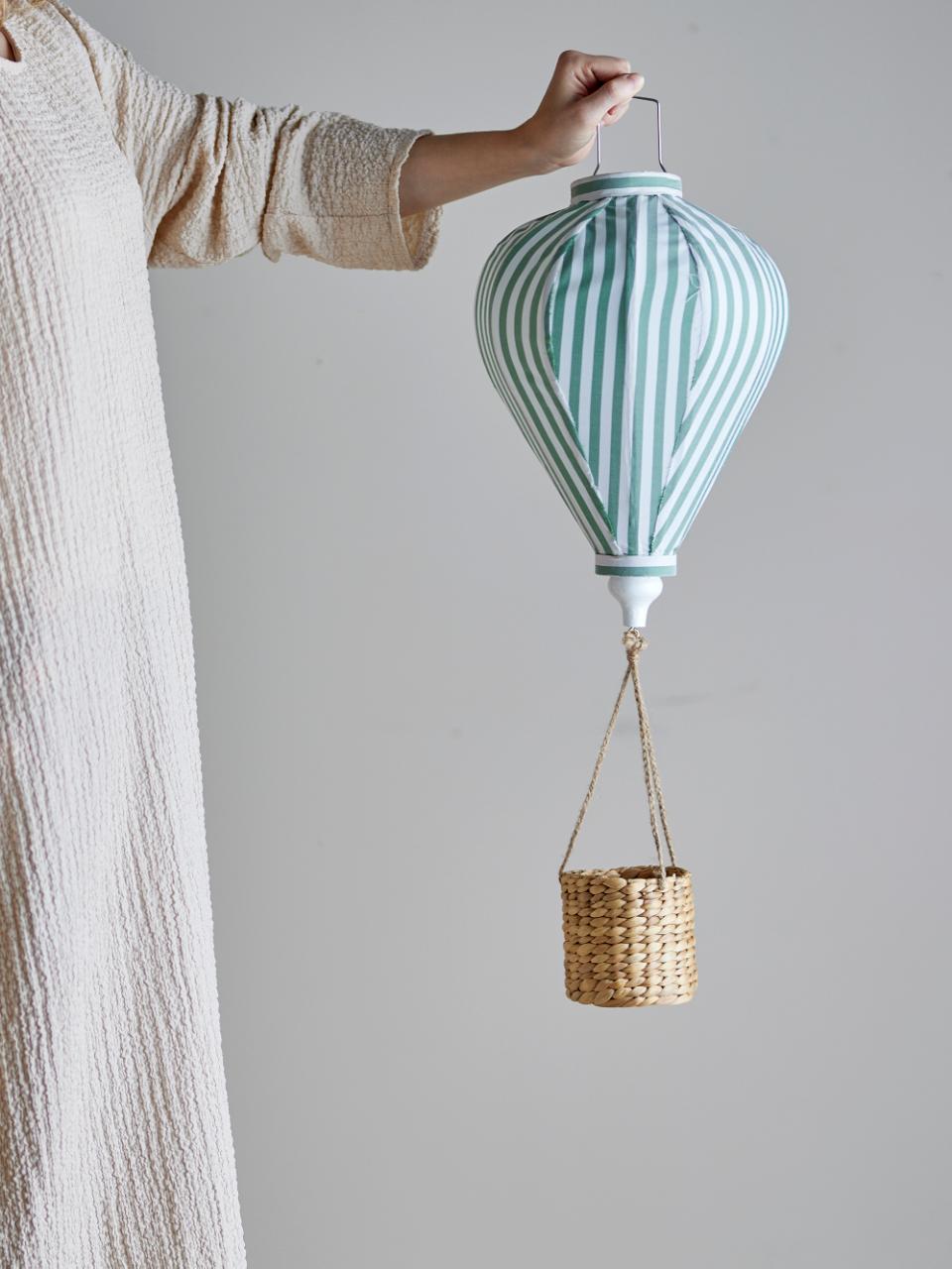 The Pomp Mobile by Bloomingville MINI is a lovely hot air balloon that is perfect as decoration in the room. Add a small battery-operated string light to the balloon so that the mobile can function as a small lamp. The balloon is designed with the finest stripes in greenish tones, while the basket is made of wicker. Use it to create a cozy atmosphere in the children's room.