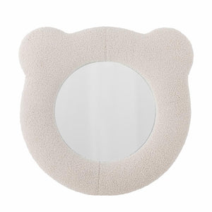 The Baily Wall Mirror by Bloomingville MINI is a small mirror with a soft frame, shaped like a teddy bear. Its calm expression makes it ideal for various interior styles. The mirror works perfectly at the end of the changing table.