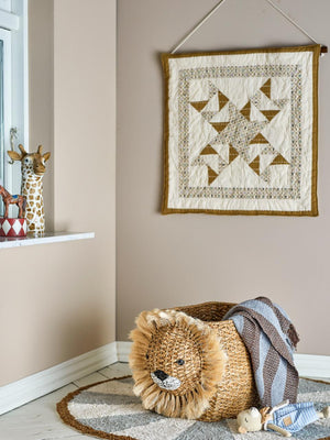 The Harrison Storage Basket by Bloomingville Mini is made of Bankuan grass and has a sweet lion head decorated. This basket will be perfect for storing all your stuff in the living room, bedroom or at the children room.