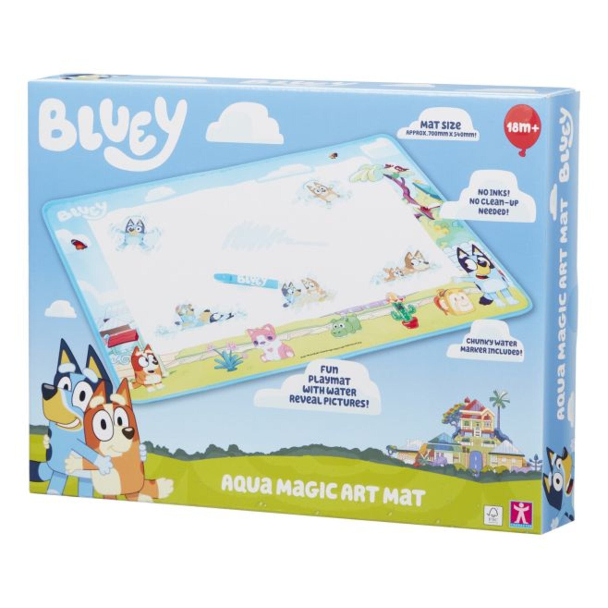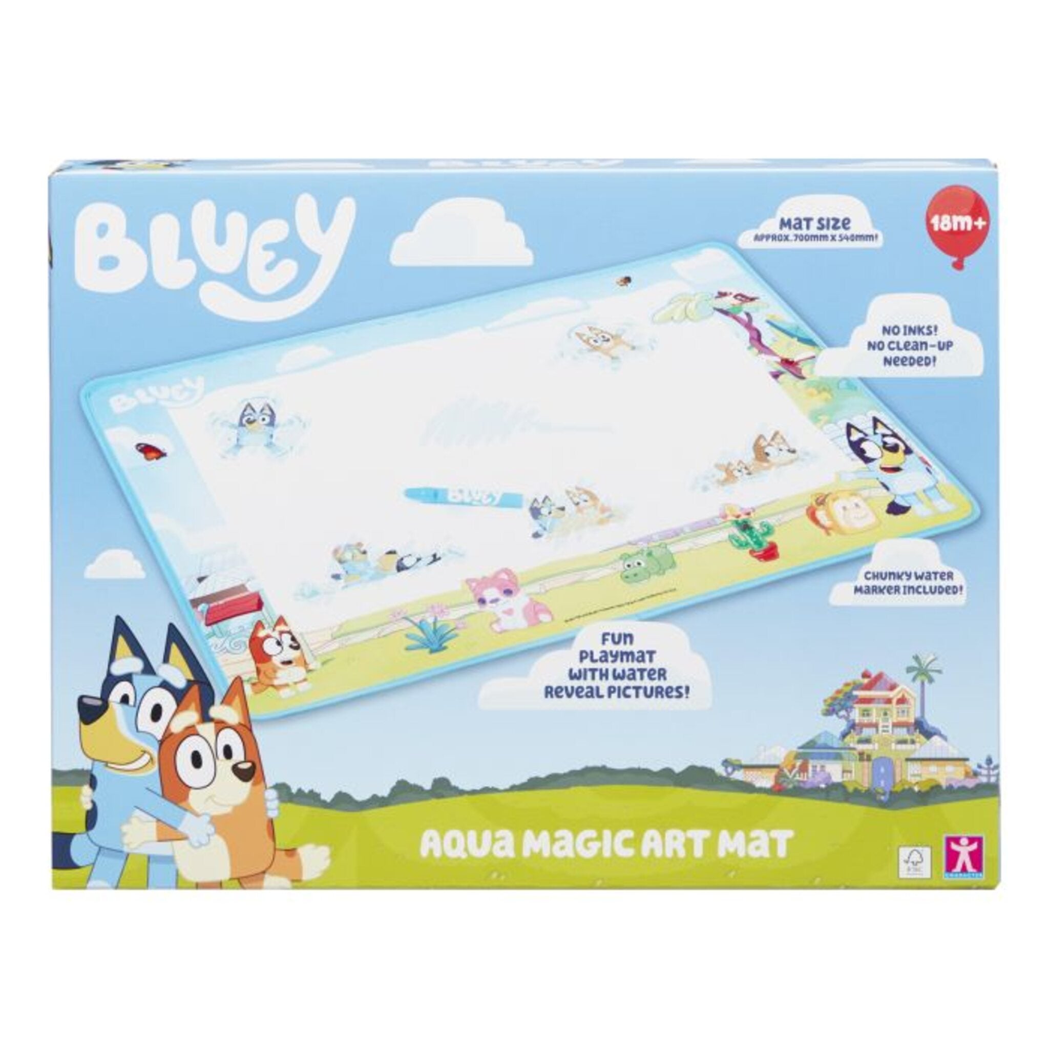 Let your little pup enjoy hours of mess-free creative fun with the Bluey Aquamagic Art Mat! This large mat measures 700 x 540 mm and features colourful Bluey designs around the edge. Simply fill the included sponge pen with water and wipe it across the mat to reveal fun Bluey designs.