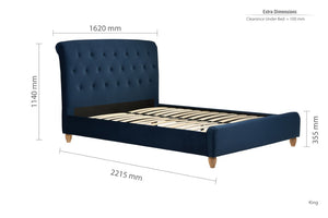 The Brompton bed frame is upholstered in a classy midnight blue fabric, this chic and contemporary bed frame is perfect for the modern bedroom.
