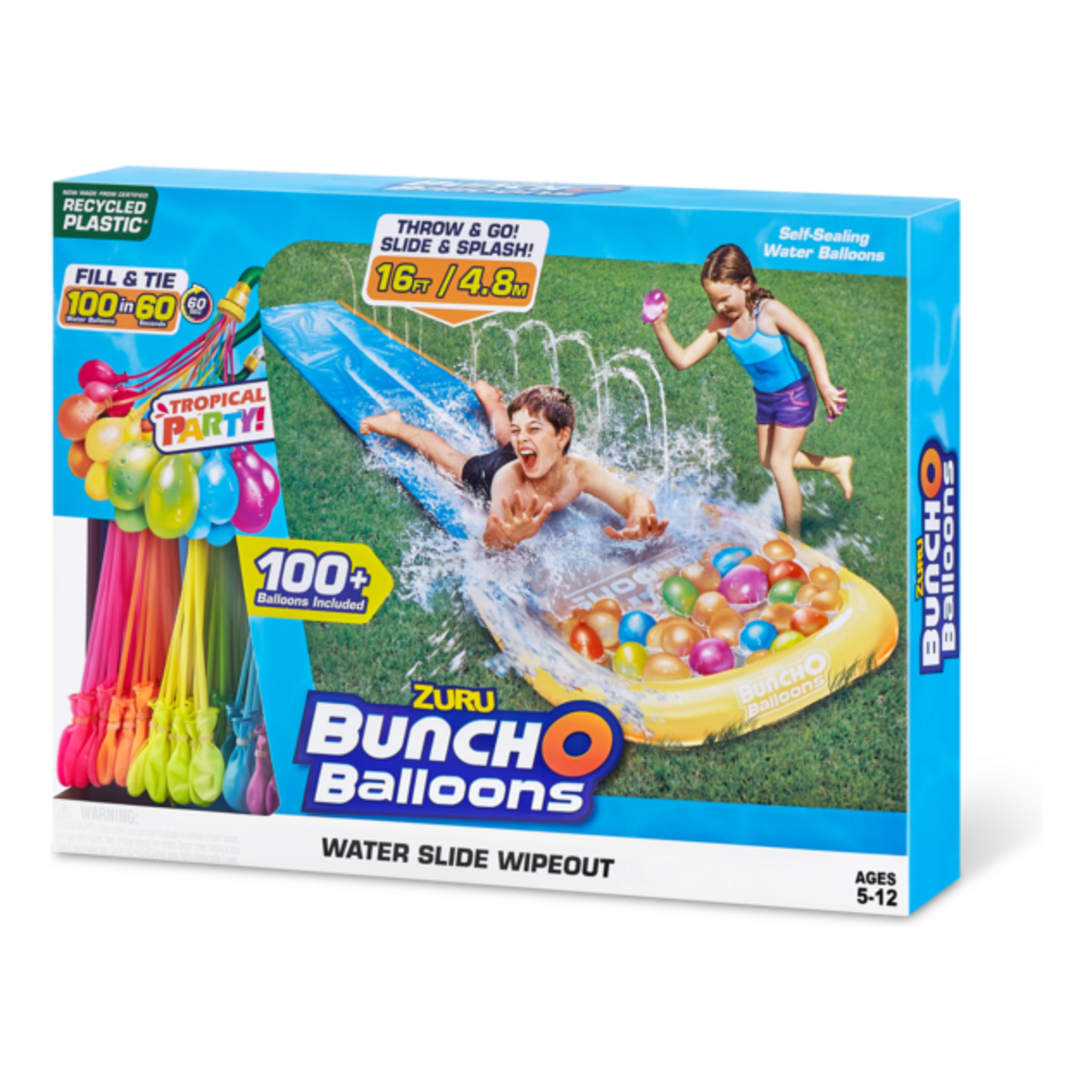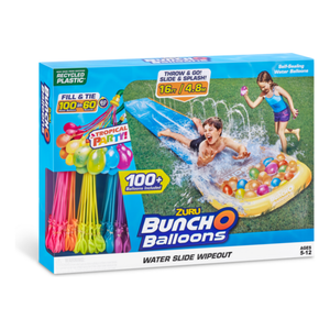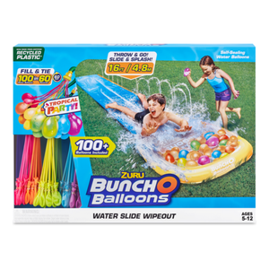 Slide into summer fun with the Bunch O Balloons Tropical Party Water Slide Wipeout! Combine the thrill of sliding on water with an epic water fight using self-sealing, fast-filling water balloons.