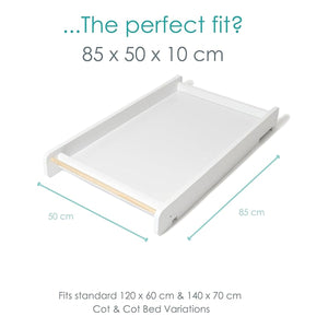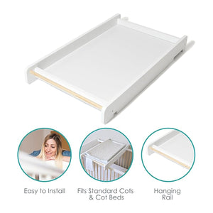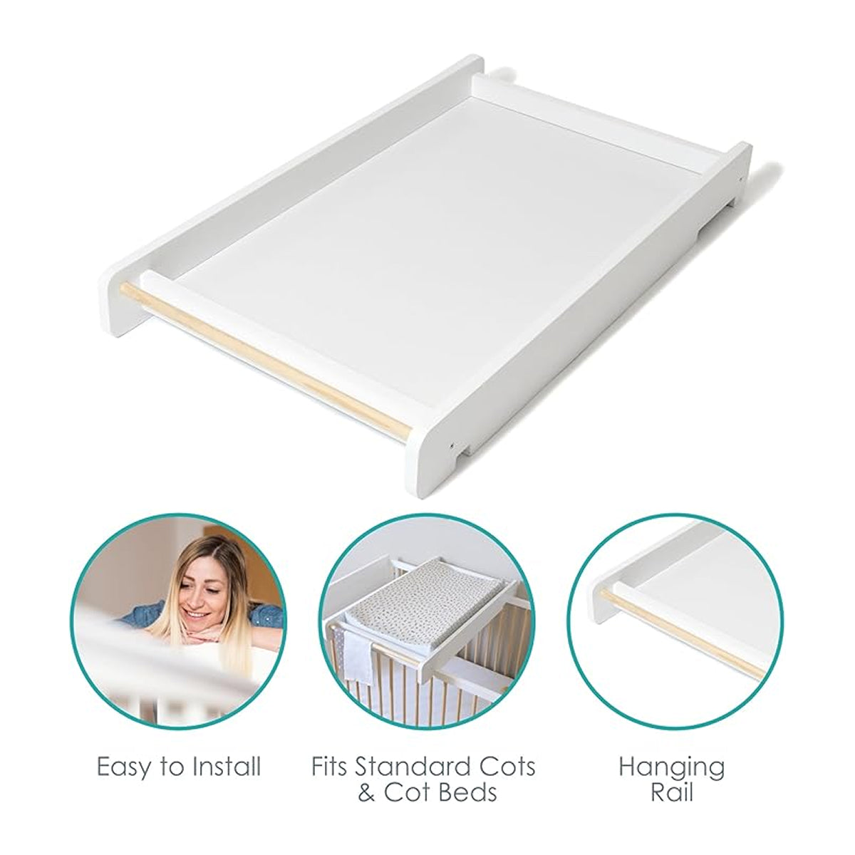 - Space-Saving Design: Ideal for smaller nurseries, this cot top changer provides a practical solution for changing your baby without taking up valuable floor space. It fits securely on most cots and cot beds with an external width of 62-76cm.