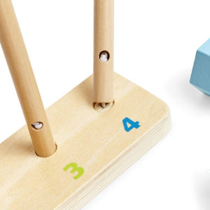 The Hape counting stacker is a fun colourful wooden stacker with endless possibilities. You can count the pieces, name the colours and talk about concepts such as taller and shorter/bigger and smaller when making stacks of beads. Little ones will have great fun removing the different colour beads from each pole, then threading them back on, matching the coloured numbers painted on the wooden base.