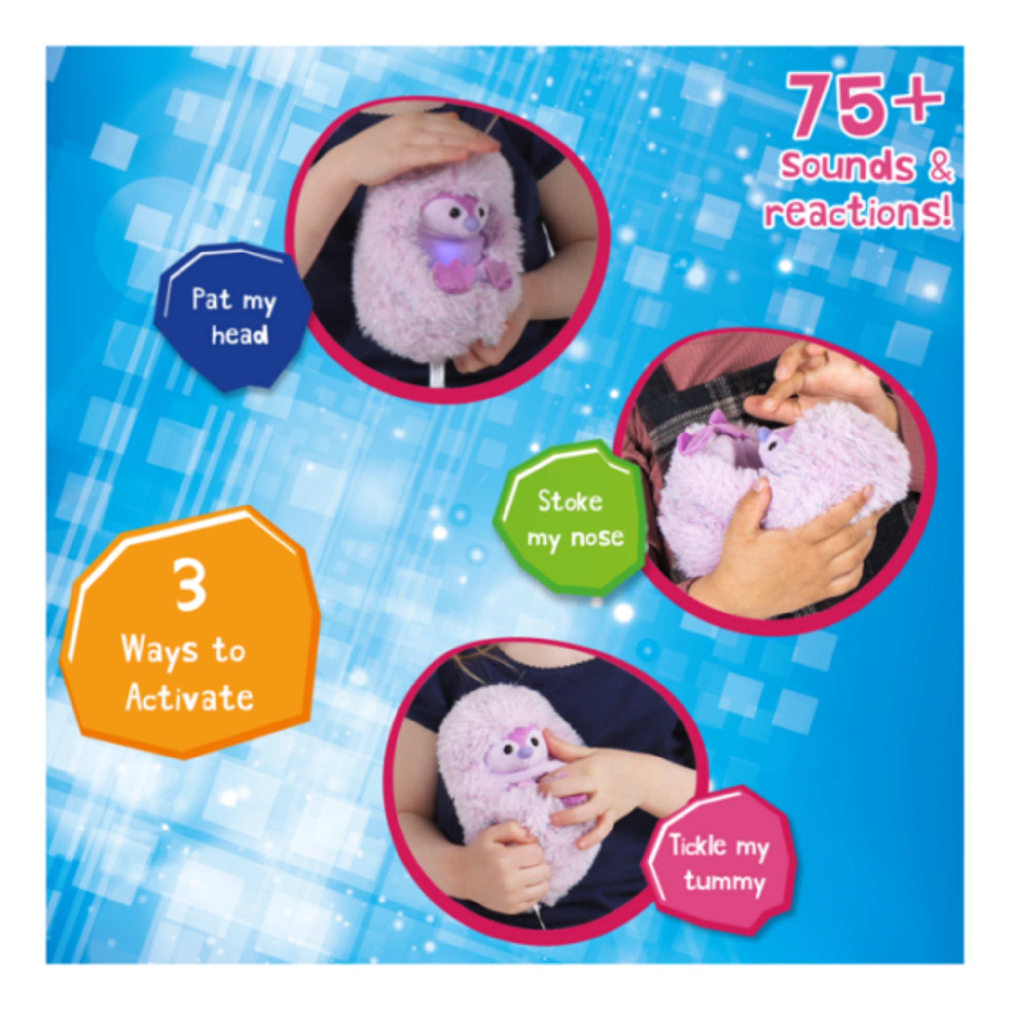 Bring home the magic of the Arctic with Pip the Penguin, the adorable interactive Curlimal who loves to play and snuggle! Soft, cuddly, and full of personality, Pip responds with giggles, noises, and sweet phrases, making playtime engaging and full of fun. With over 50 sounds and reactions, she encourages little ones to interact, recognise patterns, and enjoy imaginative play. Rub Pip’s nose to warm her up and watch her tummy glow with a magical light — she’s always ready to spread joy and teach nurturing behaviour.