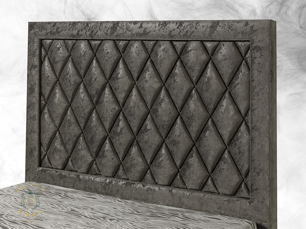 The Diamond Bed Frame is available in various colours in plush fabric.