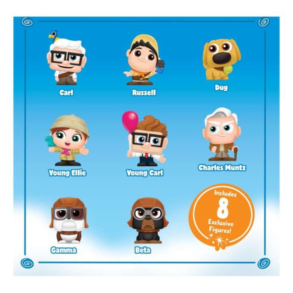 Take playtime Up, Up, and Away with the Disney Doorables Up Collection Peek! This delightful collector pack includes 8 exclusive mini figures inspired by Disney and Pixar’s heartwarming adventure Up. Each figure stands approximately 1.5 inches tall and sparkles with Doorables’ signature glittery eyes, making them perfect for play, display, and trading. With a peel-and-reveal unboxing design, every door opens to lighter-than-air surprises featuring Carl, Ellie, and friends from the beloved film. A wonderful gift for kids, collectors, and Disney fans alike!