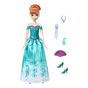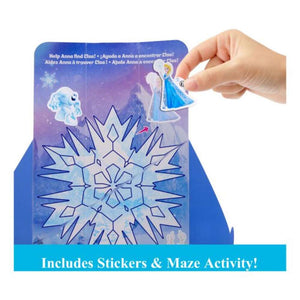 Bring the magic of Arendelle to life with the Disney Frozen Spin & Reveal Anna doll! This interactive unboxing experience is full of surprises at every turn. Open the castle flap to reveal a themed play scene with outlines for stickers and a fun maze activity. Then, spin the package to uncover 5 mystery bags filled with 5 accessories and 5 stickers. The final reveal is a beautiful Anna fashion doll dressed in a movie-inspired outfit, ready for regal adventures! Kids can decorate the play scene with stickers and complete the maze to help Anna find Elsa—just like in the movie.