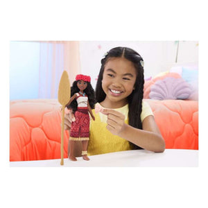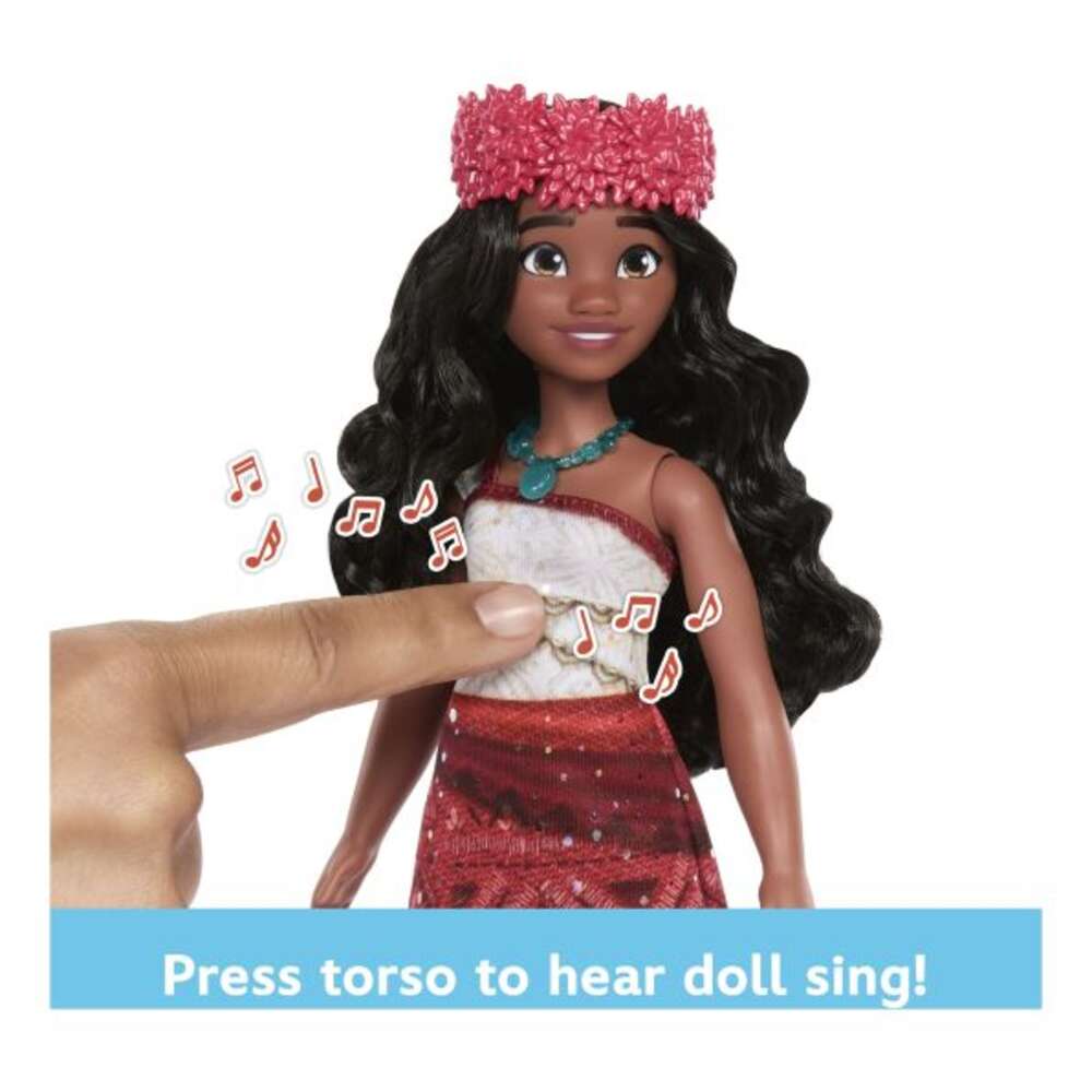 Answer the ocean’s call with Singing Adventure Moana, inspired by Disney’s Moana 2! Press her torso to hear a clip from the English version of We’re Back, the original song from the animated musical. This poseable fashion doll bends at the arms, head, and legs, letting kids imagine Moana’s epic journeys across land and sea. Dressed in her true-to-movie adventure outfit, with beautiful wavy hair and themed accessories, she’s ready for endless island adventures."