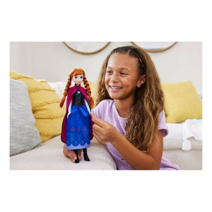 Meet this Anna doll, inspired by the fearless and determined heroine from Disney's Frozen! This posable fashion doll is shown in her signature travel look, complete with accessories including shoes, a soft cape, and skirt. Perfect for recreating iconic moments or imagining new adventures in Arendelle. Doll cannot stand alone. Colors and decorations may vary.