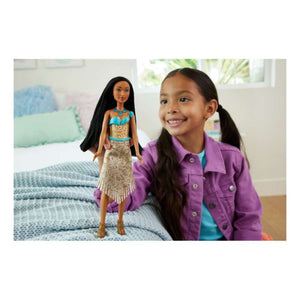 Meet Pocahontas, the bold and adventurous Disney Princess, ready to inspire your little one! This posable fashion doll wears her signature outfit from the movie, complete with removable shoes and a necklace. With long, brushable hair and a sparkling outfit, she’s perfect for imaginative play and recreating favorite movie moments. Doll cannot stand alone. Colors and decorations may vary.