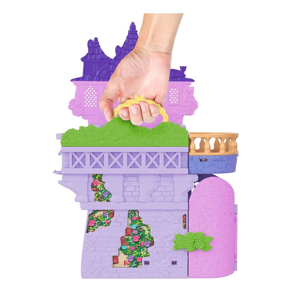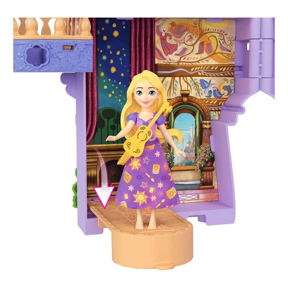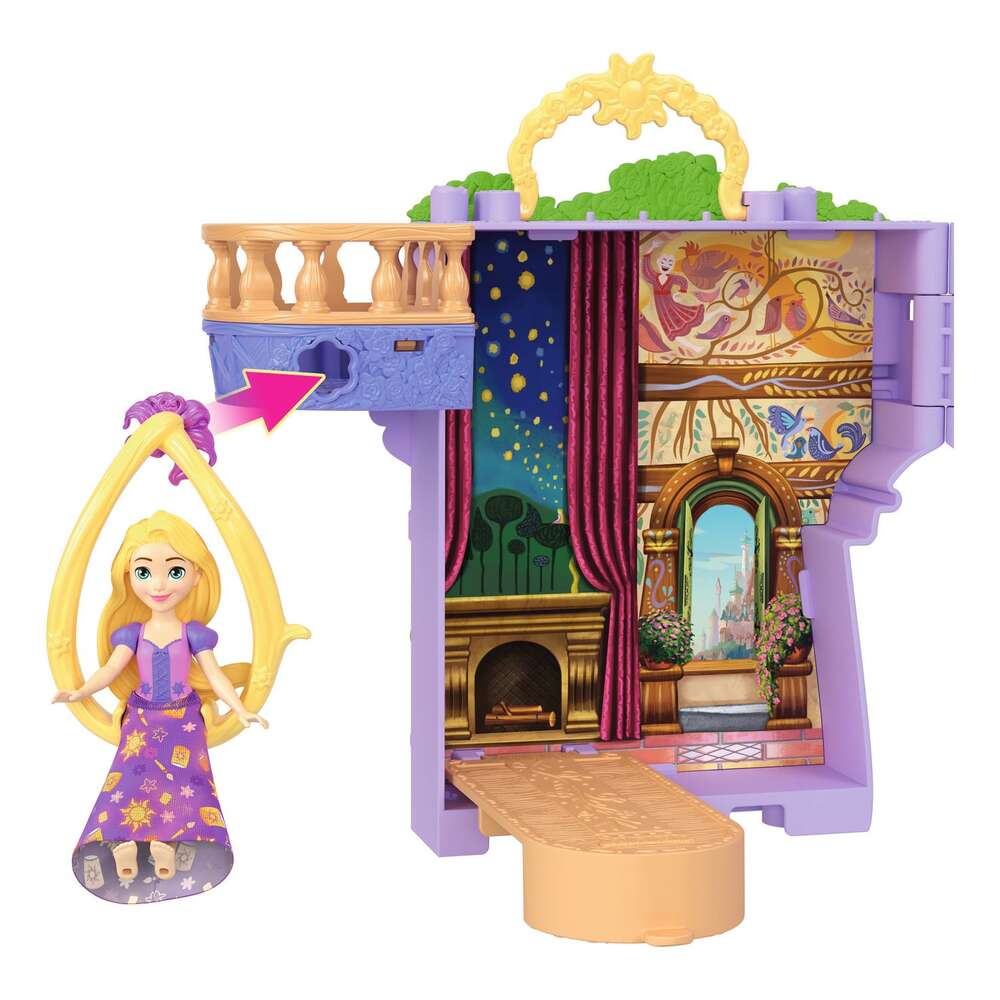Fans will be delighted with this tower playset, inspired by Disney's Tangled! A doll house in charming small scale, the playset opens to reveal multiple play areas, plus a Rapunzel small doll (3.5 inches), 1 animal friend, furniture and more. Playset includes a handle for on-the-go play and can connect with other Storytime Stackers to expand the fun. Doll cannot stand alone. Colors and decorations may vary. Each set sold separately, subject to availability.