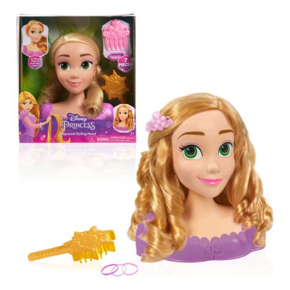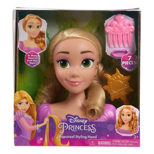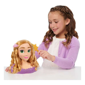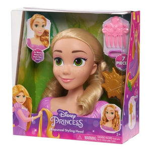 Let creativity shine with the Disney Princess Rapunzel Styling Head! This 8-inch styling head comes with 2 styling tools for Rapunzel’s long, blonde hair. The decorative comb doubles as a hair pick and pretty accessory. Kids can brush, twist, braid, or style her hair into updos, ponytails, wavy curls, and more. Hair play encourages independence, self-confidence, and develops motor skills, making it perfect for imaginative play. Collect all four Disney Princess Small Styling Heads for a complete salon experience.