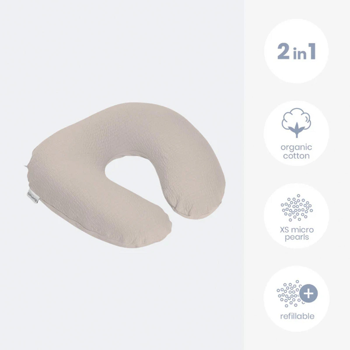 The Babymoov Doomoo Softy is a versatile nursing and support pillow designed to provide comfort for both you and your baby during feeding and playtime. Made with soft organic cotton and filled with silent microbeads, it can be used for breastfeeding, bottle feeding, or supporting your baby in a seated position. The Softy is compact, portable, and features a removable, machine-washable cover.