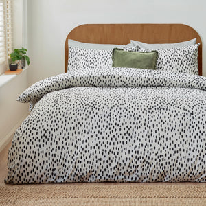 The Dottie Printed Duvet Cover Set features a modern dotted pattern on durable 144-thread count fabric. This easy-care set is reversible with a double-sided print and a clean, plain hem, offering a polished look and lasting comfort. It is an ideal choice for those seeking a balance of contemporary style and everyday value.