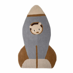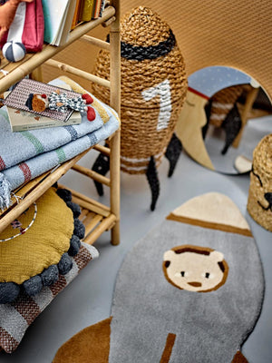 The Space Rug by Bloomingville Mini invites the little ones on a space adventure! This fun rug, in beautiful muted colours, is shaped like a rocket with a teddy bear on board. Made of wool, the rug provides a warm and comfortable surface to play on. It's perfect for adding a childlike and cosy touch, whether in the kids' room or the play nook in the living room.