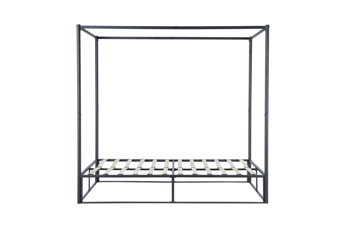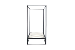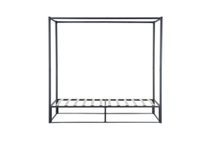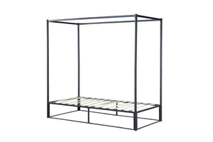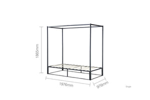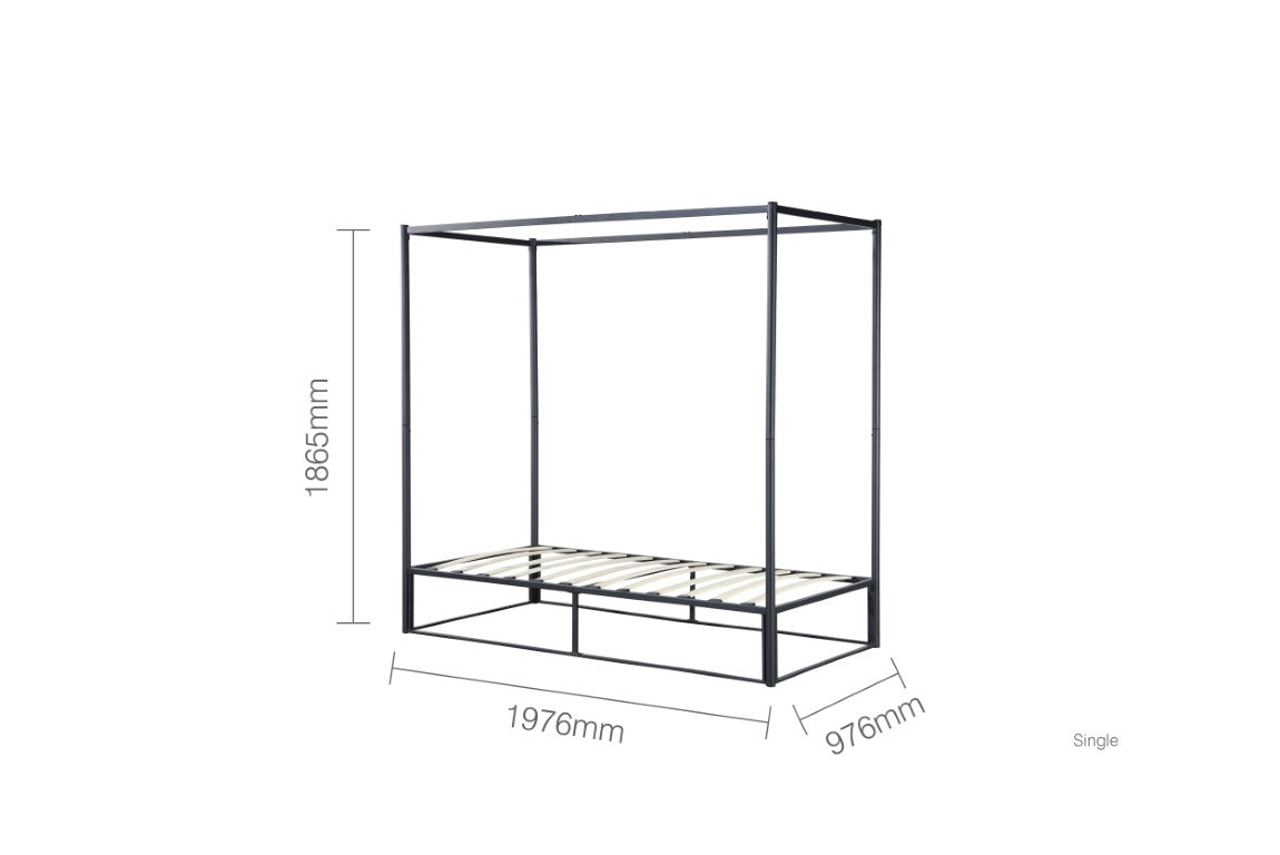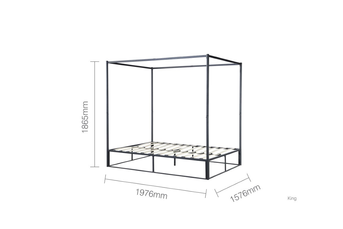 The sleek design strips back the traditional bulky four-poster to a simple contemporary steel metal frame structure.