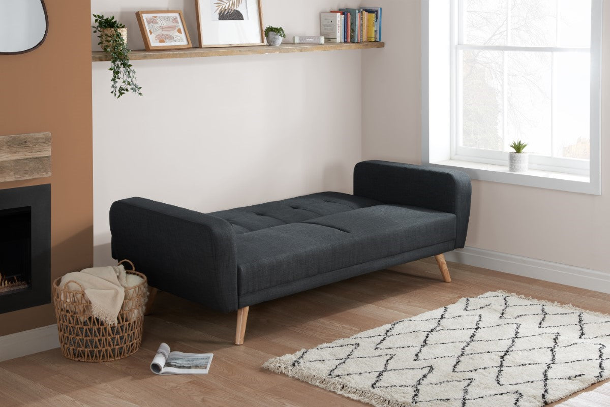Upholstered in grey fabric this versatile sofa bed is stylish and practical.