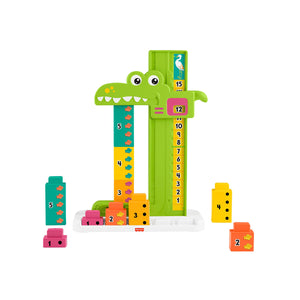 Preschoolers can count on fun with the Adding Alligator learning toy from Fisher-Price. Designed to introduce numbers and early math concepts using blocks and stacking play, kids can explore adding and subtracting by stacking the numbered blocks up to “feed” the alligator. When they slide the alligator’s head down, it stops on the top block and the correct sum of the numbers is revealed! Kids can try adding different number combinations, or they can remove blocks to see how subtraction works. Blocks stack on the base for easy storage. Colors and decorations may vary.