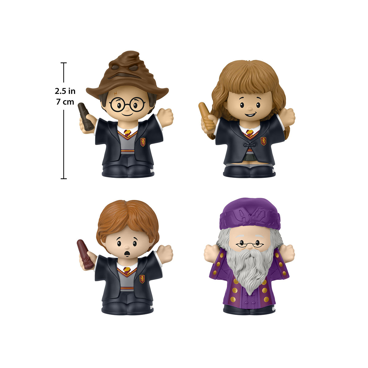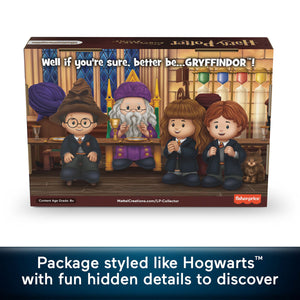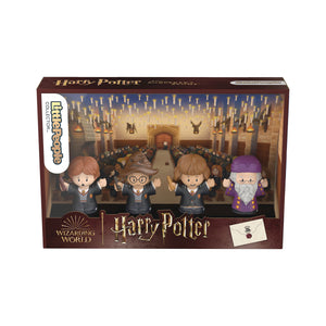 Witches, wizards, and Muggle fans alike will love remembering their first trip to the magical castle of Hogwarts with this special edition Little People Collector set commemorating the first film in the Harry Potter series, Harry Potter and the Sorcerer's Stone. Relive the Sorting Ceremony at Hogwarts School of Witchcraft & Wizardry with this collectable set, which features Harry Potter, Ron Weasley and Hermione Granger all in their school uniforms, plus headmaster Albus Dumbledore in his purple robes. The decorative window box package brings the Hogwarts Great Hall to life in beautiful detail for collectors and fans to admire.