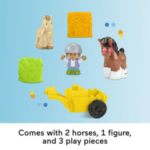 Toddlers can gallop into exciting storytelling play with the Little People Friendly Horses Stable playset from Fisher-Price. The barn features 3 stalls for kids to explore with the horse and pony figures, plus a spinning carousel that activates fun sounds, a drop-through feeding chute, and a wagon to hitch for hauling play. Kids will love trotting their horse friends around the stable for lots of spinning, feeding corralling play! Colors and decorations may vary.