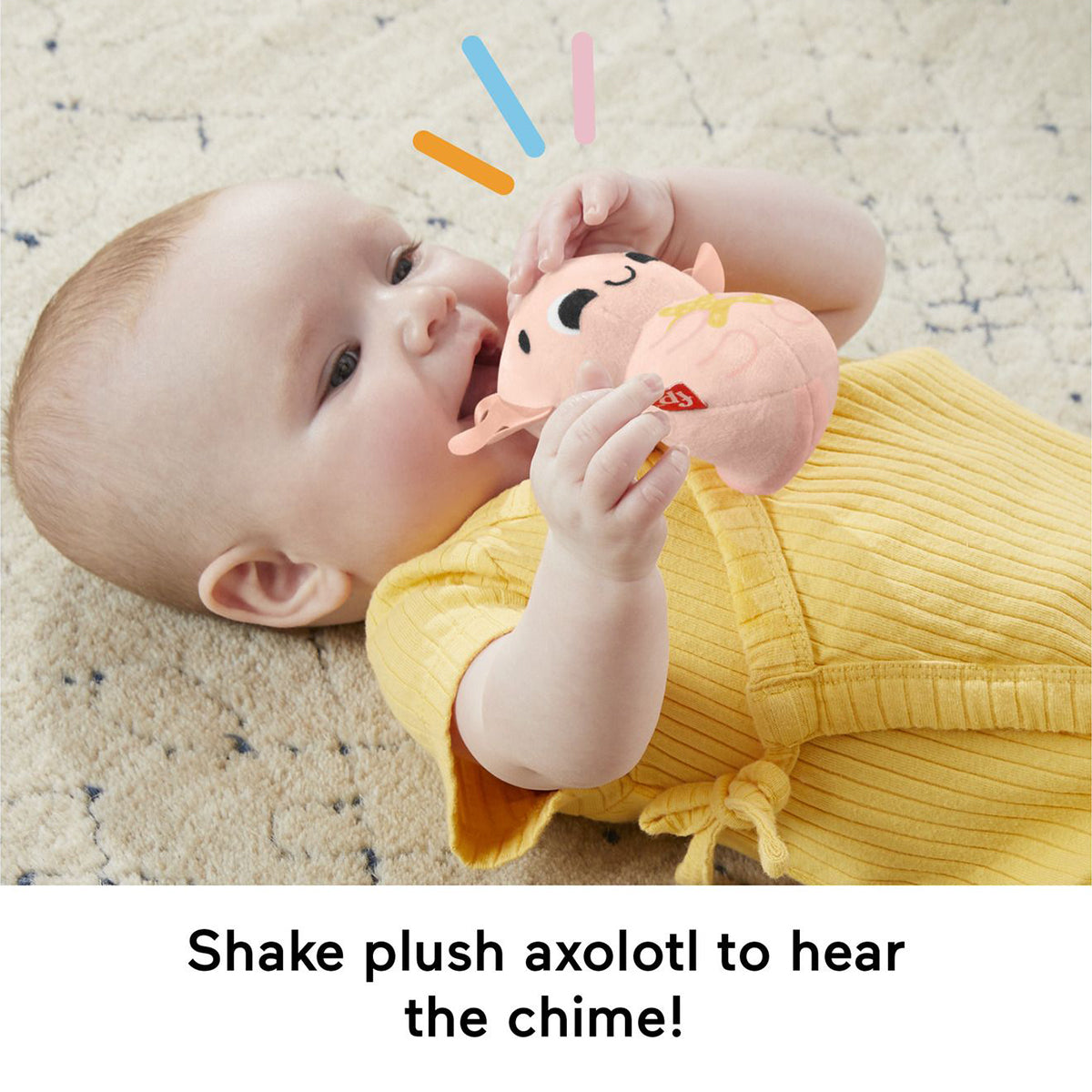 Features: Set of 4 baby toys to help foster newborn sensory development; giftable package is perfect for a baby shower or sprinkle BPA-free bunny teether has textured ears and removeable jingle ball for added fine motor play Plush axolotl features gentle chimes for auditory reward and cause & effect play Multi-textured moth rattle and fabric crinkle panel easily attach to baby gym, stroller or diaper bag with convenient loops for travel play Helps strengthen fine motor skills and engage the senses for newborns from birth & up Fisher Price So Many Senses Gift Set, 4 Baby Sensory Toys with Fine Motor Activities. Birth + Batteries not required