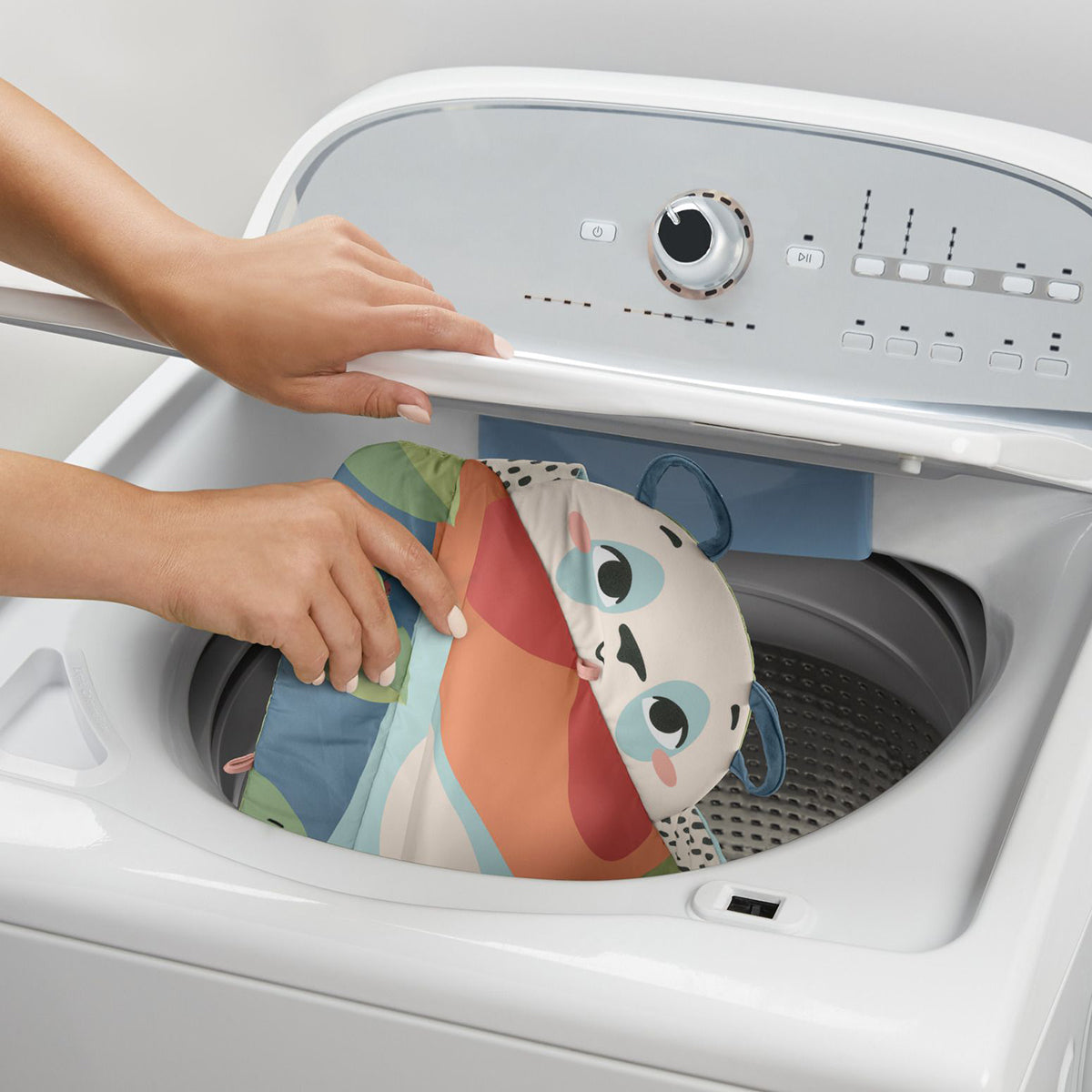 The paws prop up the high-contrast tummy time face panel or can be used to secure the rolled mat for travel adventures. The crinkle toy and a self-discovery mirror link to the tummy time panel or attach to loops to keep play time fresh and fun. Mat is machine washable with toys removed.