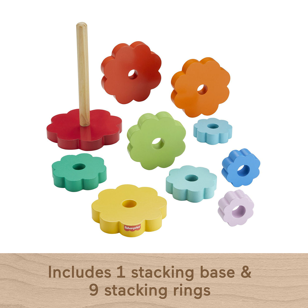 The Wooden Ring Stacker from Fisher-Price is a fresh take on a classic stacking toy. Toddlers will love sorting, stacking and spinning the easy-to-grasp colorful scalloped shaped rings on the wooden stacking base. Made with wood from Forest Stewardship Council-certified sources (FSC-N004566) and decorated with non-toxic, water-based paints, this stacking activity is a fun way to help kids develop fine motor skills as they play. Colors and decorations may vary.