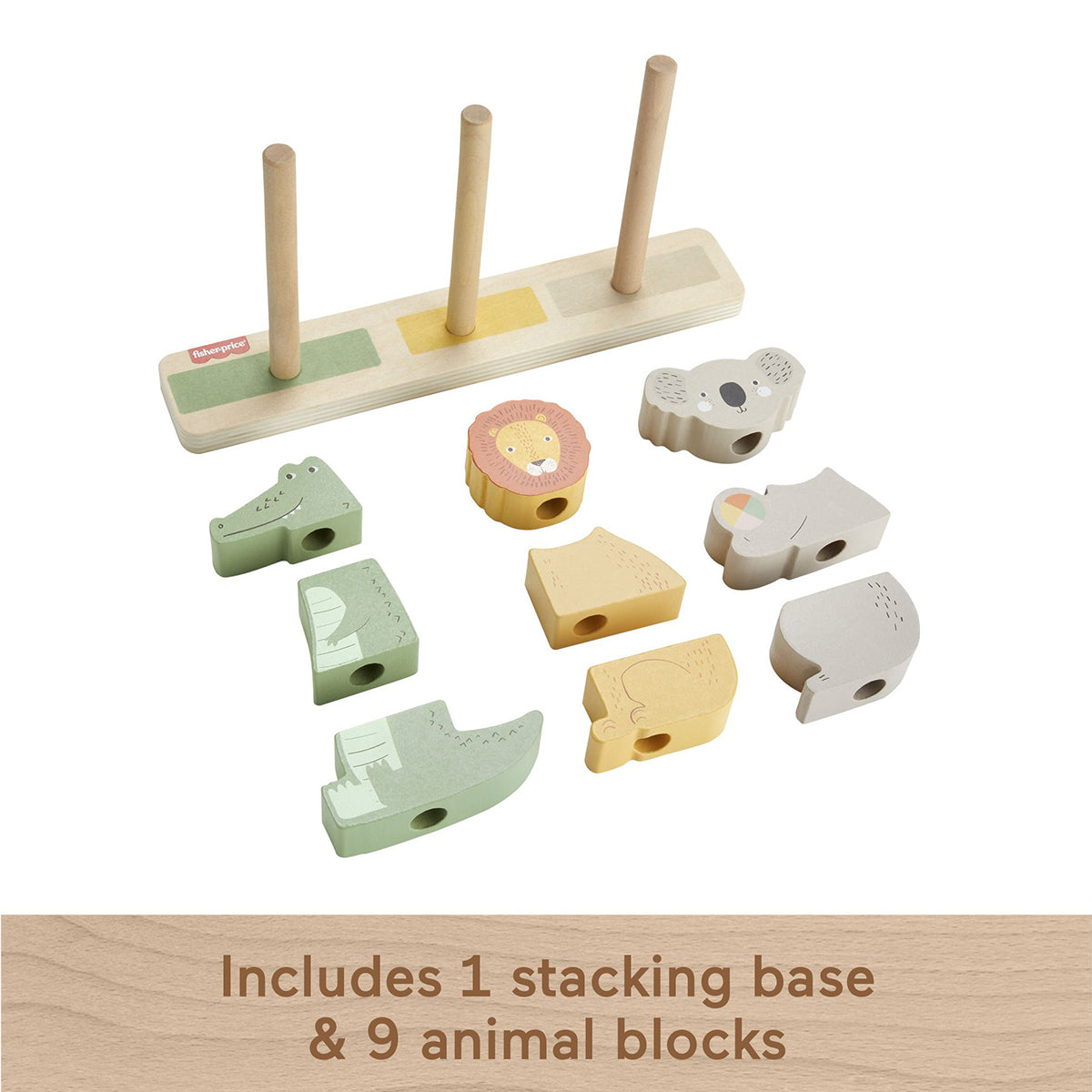 Let your child’s imagination run wild with the Wooden Stack & Sort Animals toddler toy from Fisher-Price! Kids can stack the pieces on the base to make an alligator, lion, koala, or any creature they can imagine! Plus, all that sorting and stacking helps them develop their fine motor and problem-solving skills. Made with wood from Forest Stewardship Council-certified sources (FSC-N004566) and decorated with non-toxic, water-based paints. Colors and decorations may vary.