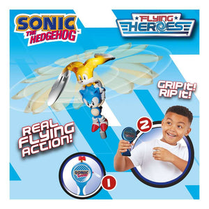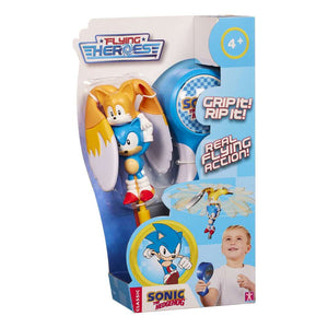 Flying Heroes Sonic and Tails! Unleash the power of your Sonic and Tails Flying Heroes! Make them fly fast, far and high! Grip the cord, Rip the cord then watch them fly high up into the sky! Your favourite heroes Sonic and Tails are now Flying Heroes! The harder you pull the cord, the faster they will spin and the higher they will fly! Only you have the power to make them fly!