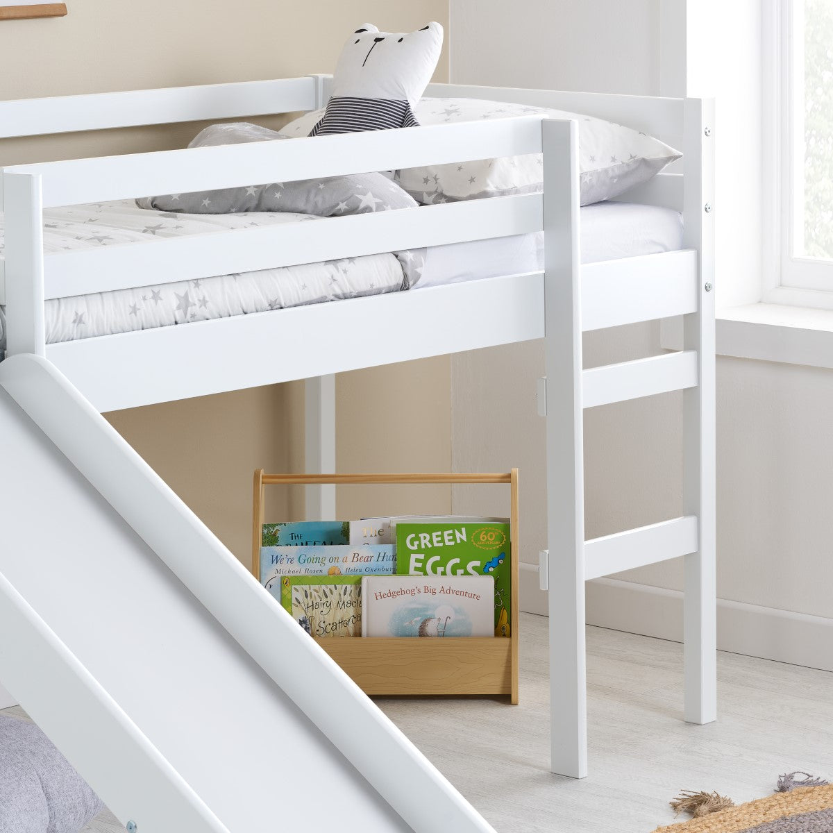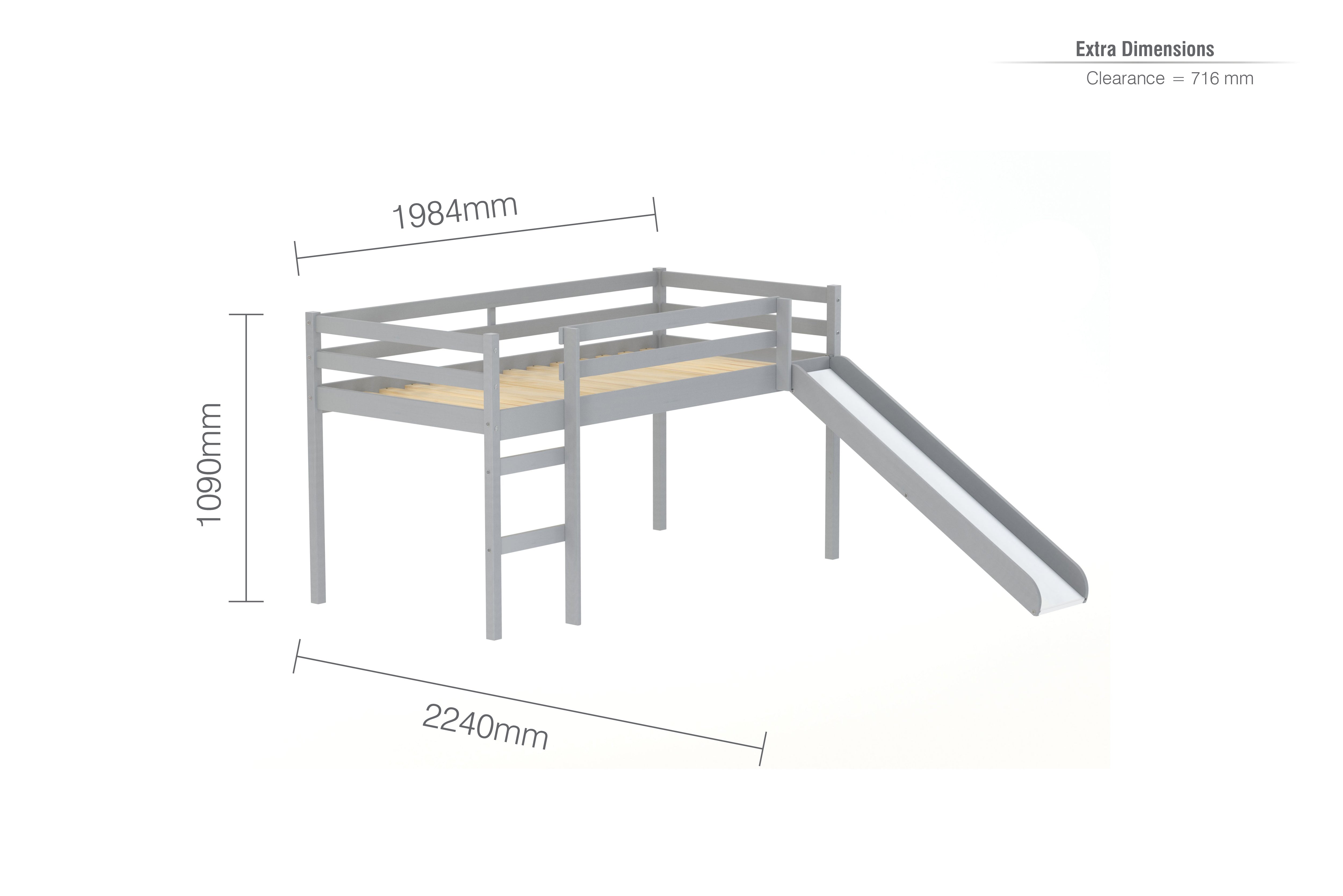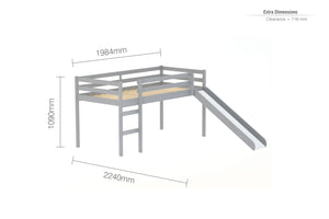 Bring your kids bedroom to life with the Frankie Midi sleeper with slide - Perfect for sleep and play! Thanks to it's slide, getting out of bed has never been so fun.