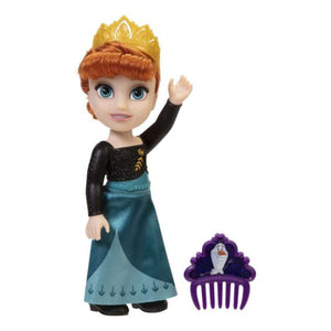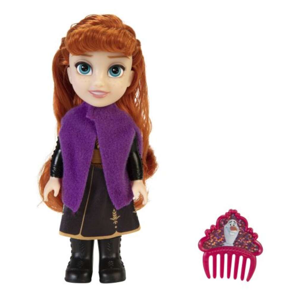 Continue the adventure with Disney’s Frozen 2 Petite Adventure Anna Doll! Perfectly petite for on-the-go fun, Anna comes dressed in her signature outfit from the film, complete with a removable skirt, cape, and boots. Kids can pose Anna to recreate favorite moments from Frozen 2, and enjoy extra hair play with the included Olaf comb to style her classic red hair. This petite doll is ideal for imaginative play and adventures anywhere!