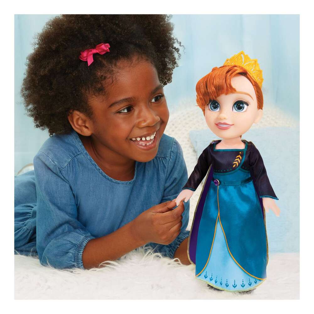 Disney’s Frozen 2 Queen Anna Doll: The epic adventure continues in Disney’s Frozen 2, the exciting sequel to the hit film, Frozen! Join your beloved friends, Anna, Elsa, Kristoff, Olaf, and Sven as they venture beyond Arendelle's gates to strengthen their bonds and make new discoveries that will change their lives forever. Join Anna at the beginning of the next chapter of her life, as Queen of Arendelle, with Disney Frozen 2 Queen Anna Doll! Anna is warm and loving, and the brave new leader of Arendelle. She is dressed in her iconic, film-inspired Queen Anna fashion that includes a silky teal and turquoise dress with rich black, purple and gold detail with a matching cape and bejeweled belt. To complete her look, Anna is wearing a beautiful tiara infused with the crocus symbol- the crest of Arendelle.