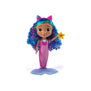 Enter Gabby's magical world of Gabby’s Dollhouse: The Movie with the Sing & Shine Mermaid Gabby! This enchanting Gabby mermaid doll is a treasure trove of lights and sounds, ready for endless adventures. With a simple press on her heart necklace, Mermaid Gabby lights up and plays 14 different sound effects, phrases, and music from Gabby’s Dollhouse: The Movie.