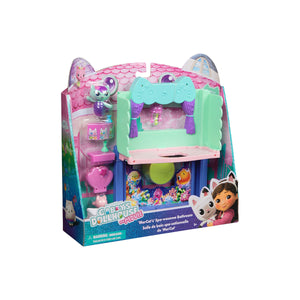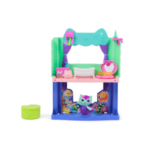Place MerCat on the pegged pedestal, and pull the room down, to teleport her to her film-world aquarium. Unbox the Dollhouse Delivery, just like Gabby does in the show, to find a surprise accessory, then scan the QR code to unlock a surprise in the Gabby's Dollhouse app. This set is a fun-filled way to inspire pretend play and invites meow-mazing explorations, with these adorable Gabby cat toys for kids.