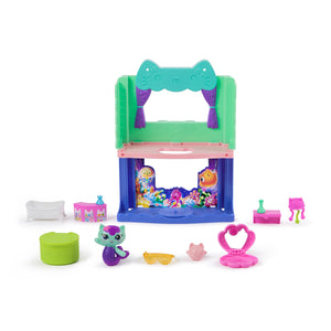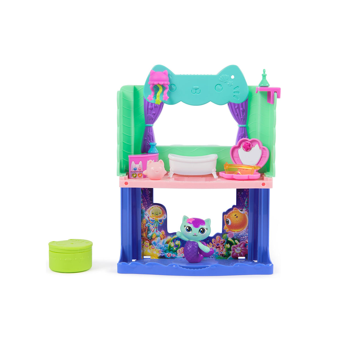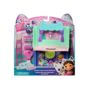 Explore MerCat's Spa-wesome Bathroom, from Gabby's Dollhouse: The Movie. This 10-piece playset brings a splash of creativity with a charming MerCat figure & a combined 8 pieces of doll house furniture & accessories, for cat-tastic adventures with these learning toys. The Spa-wesome Bathroom is designed to be attached to the dollhouse and transforms into a 2-storey dollhouse room, creating an even more thrilling dollhouse world, enhanced by a surprise feature.