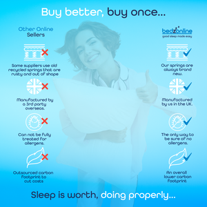 All our mattresses are designed and manufactured in the UK and are fully compliant with all UK regulations (BS 7177:2008 for Domestic Use).