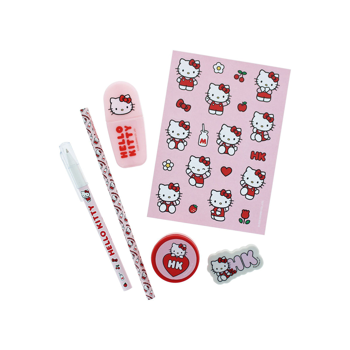 This super cute set has all the stationery essentials you will need. It contains an A5 exercise book, pen, pencil, highlighter, sharpener, eraser and sticker sheet. All contents are packaged inside a reusable zip lock plastic wallet which you can take with you wherever you go.
