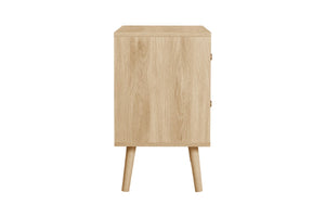 The Herringford 2-Drawer Bedside is a testament to minimalist elegance and functional design. The chevron patterned front drawer adds an artistic flair, while the open shelf space below presents an accessible spot for books or decorative items.