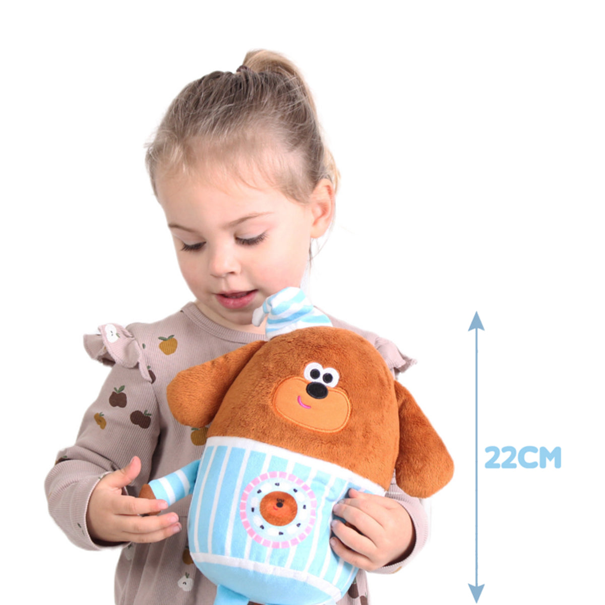 Snuggle up to Sleepy Time Duggee with his gentle music, soft glowing lights and Duggee sounds. Perfect for quiet time, nap time or simply calm and cuddles time! Press his hand to hear the iconic Bedtime Song from the Hey Duggee show that fans will instantly recognise along with gentle snoring and woof sounds!