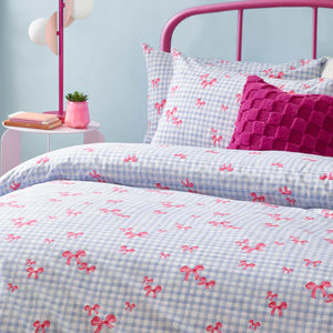 GINBOWS/D01/BLU Heya Home Gingham Bows Printed Duvet Cover Set Blue: