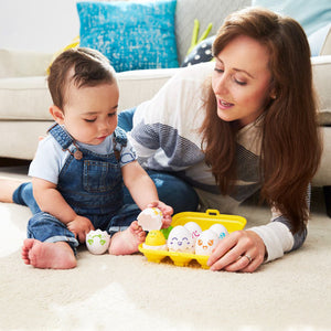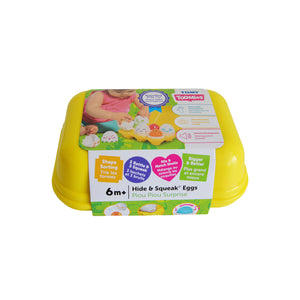 Bigger and bolder that ever before, Hide & Squeak® Eggs have been a smash hit with parents and children for a generation. This new edition has grown in size with eggs that have gone from medium to large! Our half-dozen heroes still love getting mixed up and sorted again. From six months on, babies will love to engage with these funny-faced eggs.