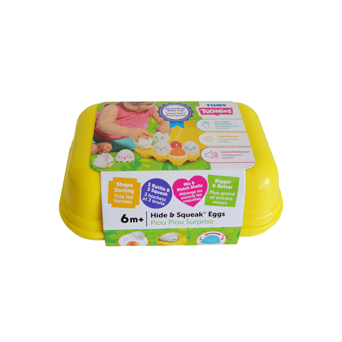 A clever alternative at Easter for Mums and Dads who’d rather avoid chocolate, Hide & Squeak® Eggs are a welcome addition to the Toomies range all year round, and easy to take with you thanks to the sturdy storage egg box that clicks shut. No batteries required. Suitable for children aged 6-36 months and over.